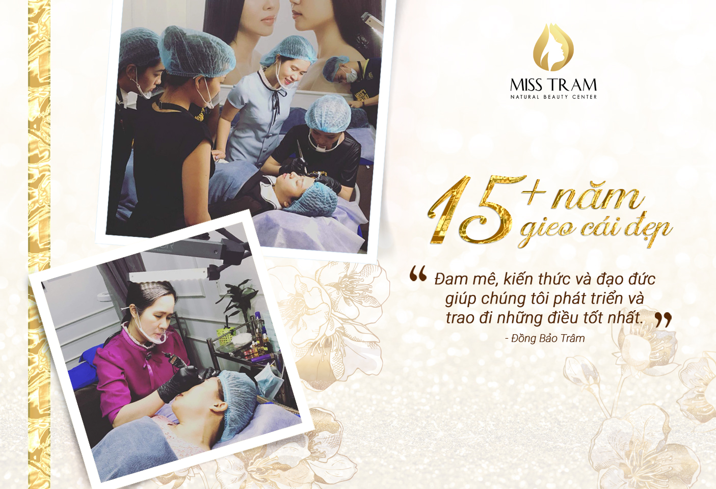 Không chỉ góp phần tôn vinh nét đẹp Việt, Miss Tram còn muốn lan tỏa những điều tốt đẹp cho cộng đồng, hỗ trợ các bạn trẻ vững vàng nền tảng, nắm bắt cơ hội nghề nghiệp hấp dẫn trong tương lai với các khóa học làm đẹp, thẩm mỹ chuyên nghiệp.